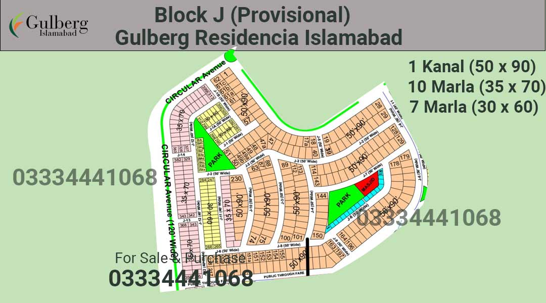 Click here to see A, B, C, E, F, G, H, & I Blocks Maps. Gulberg Residencia J Block Map is one of the prime location block in Gulberg Islamabad.